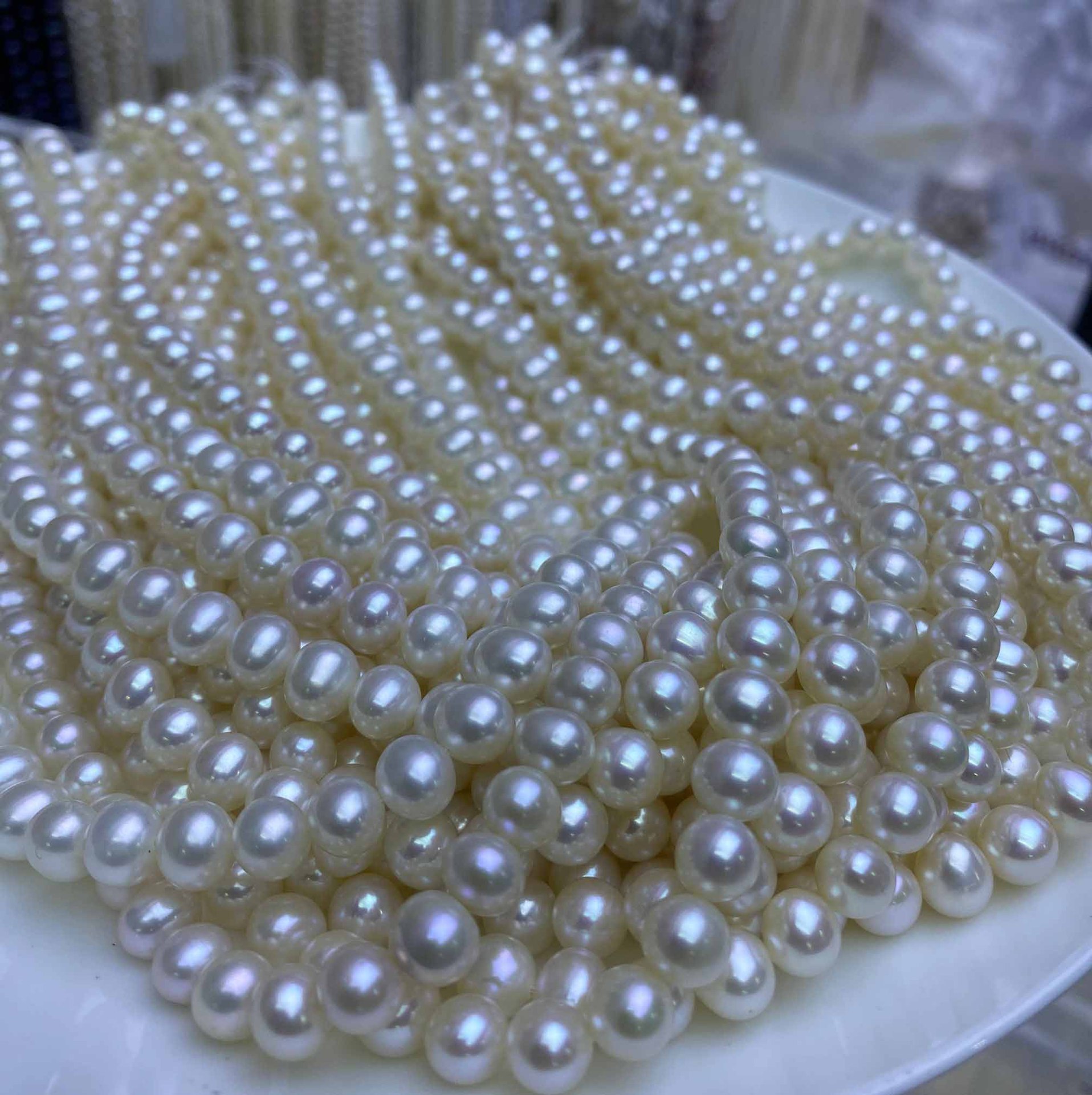 1165 freshwater pearl nearly round 7-8mm natural white work in progress DIY handmade accessories