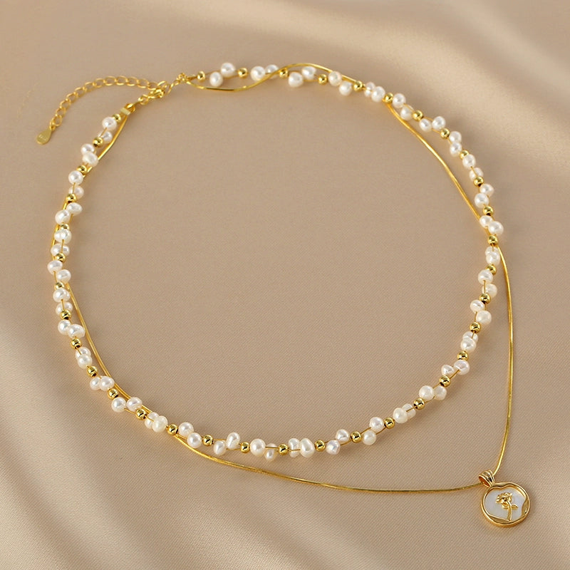 Baroque Pearl Stacked Chain Double Woven Necklace ins Ladies Raw Romantic Rose Flower Gift