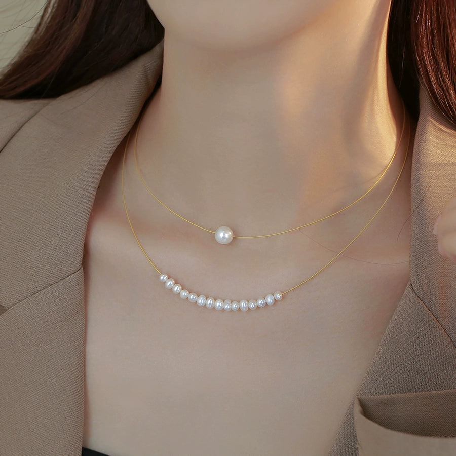 French retro natural pearl necklace female stacked wearing 14k gold collarbone chain Qixi Festival gift to girlfriend