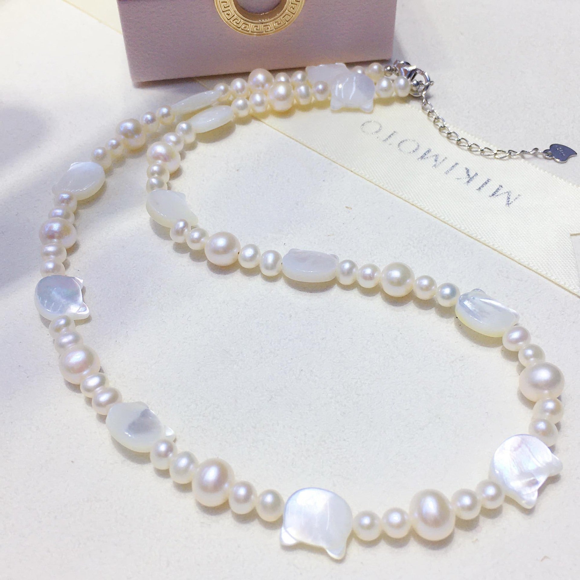 Idol Internet celebrity explosion tian ran freshwater real pearl shell black and white cat sweet cool wind necklace