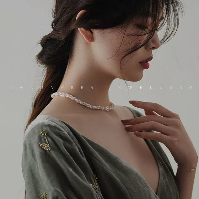 Pearl Necklace Baby Pearl Three Circles Twined Twist Chain Small Pearl Necklace 925 Silver
