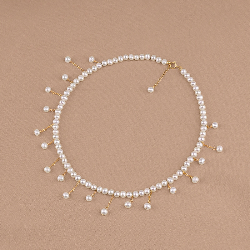 Gold Tassel Collarbone Chain Natural Freshwater Pearl Necklace ins Style Gold Wrapped Women's Collar XL043