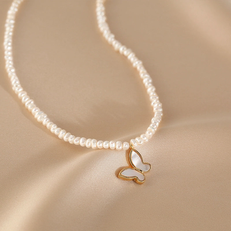 Millet bead necklace women's natural freshwater small rice grain pearl neck chain temperament advanced butterfly collarbone chain