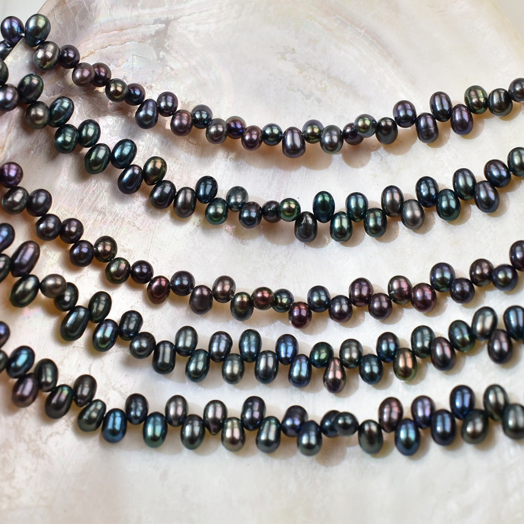 1047 Natural Freshwater Pearl 4-5mm Peacock Black Rice Bead