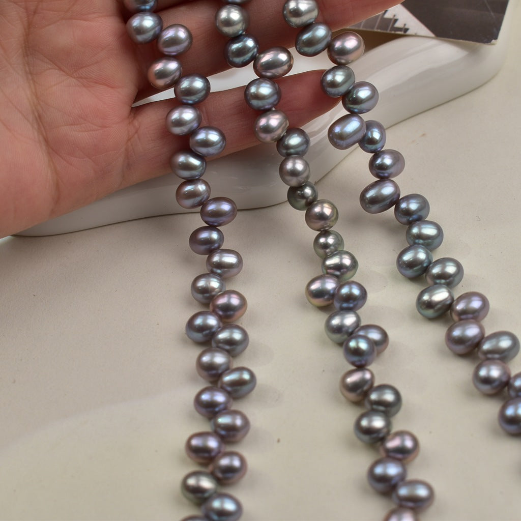 1032 Natural freshwater pearl 7-8mm Panax notogeng gray rice bead necklace work in progress DIY loose bead jewelry accessories