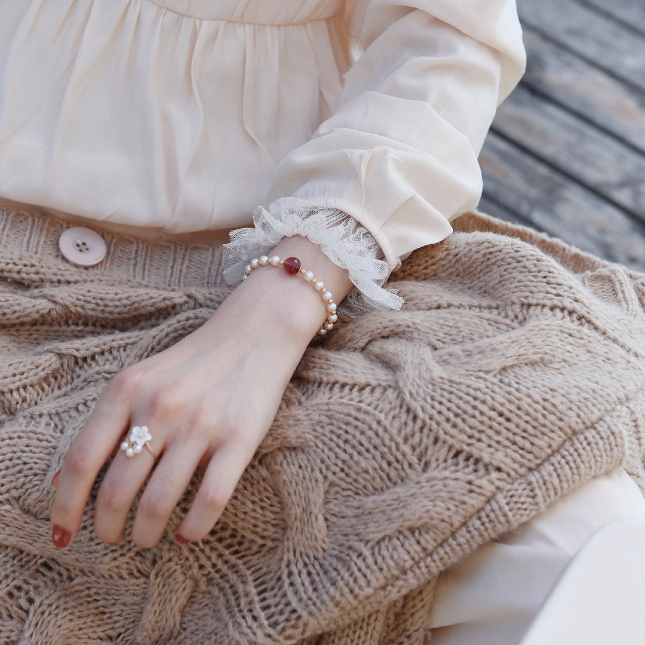 Natural freshwater pearl bracelet female pigeon blood red strawberry crystal bracelet 14k bag gold jewelry female gift wholesale