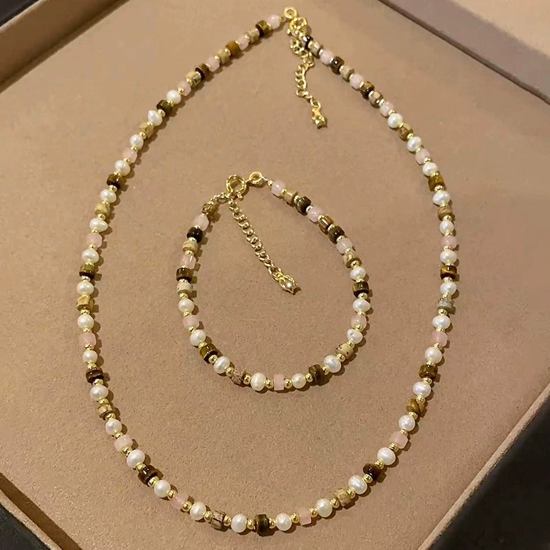 Natural Necklace Bracelet Set Ladies Design Tiger's Eye Bracelet Premium