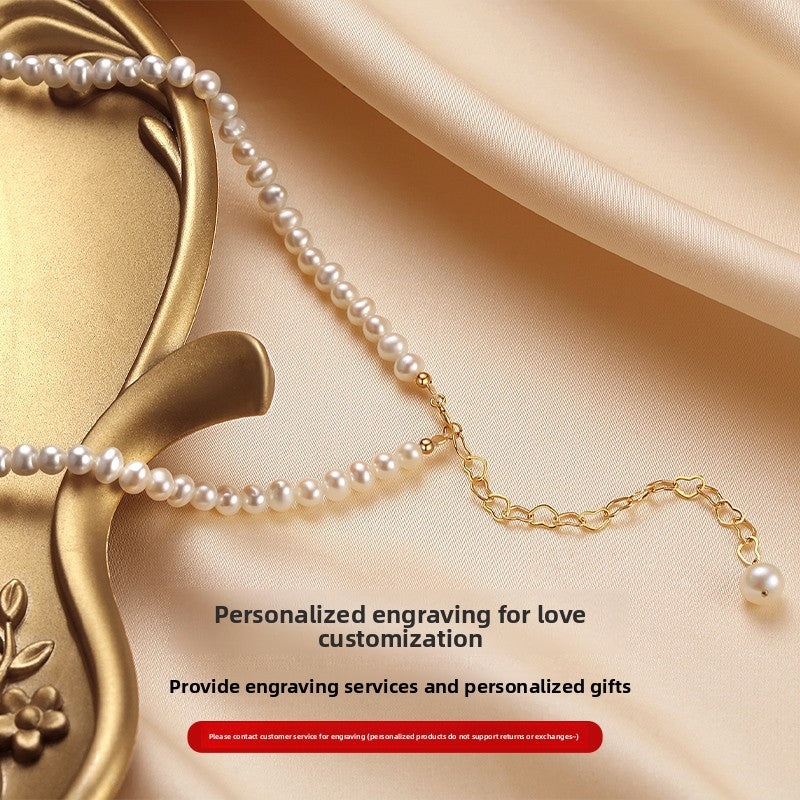 Pearl Necklace Ladies Celebrity Near Round Freshwater Beads French Love Engraving