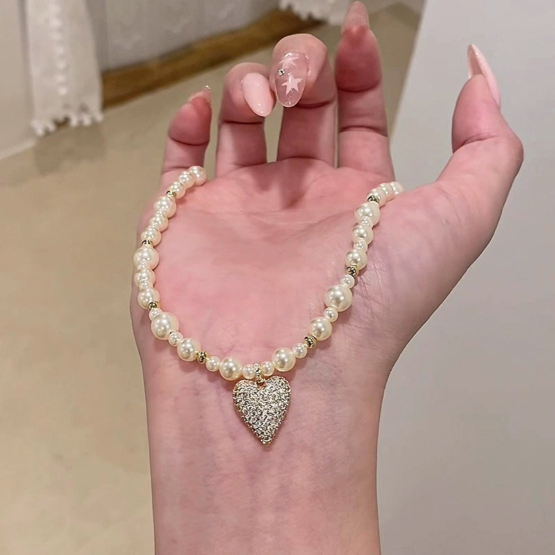 Pearl Necklace Women's Design Sense Love Pendant French Premium