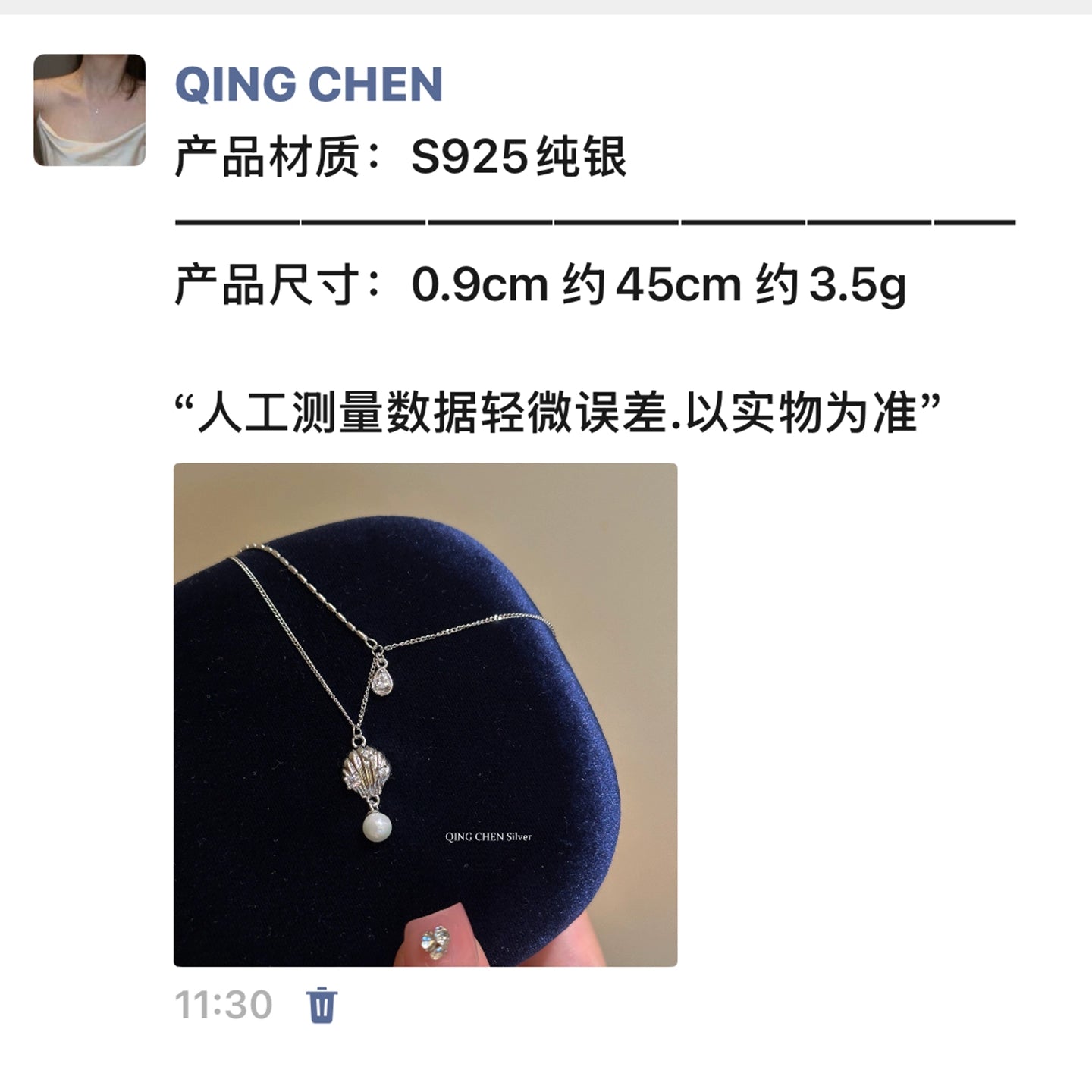 S925 Sterling Silver Shell Pearl Double Necklace Ladies Exquisite Silver Jewelry
