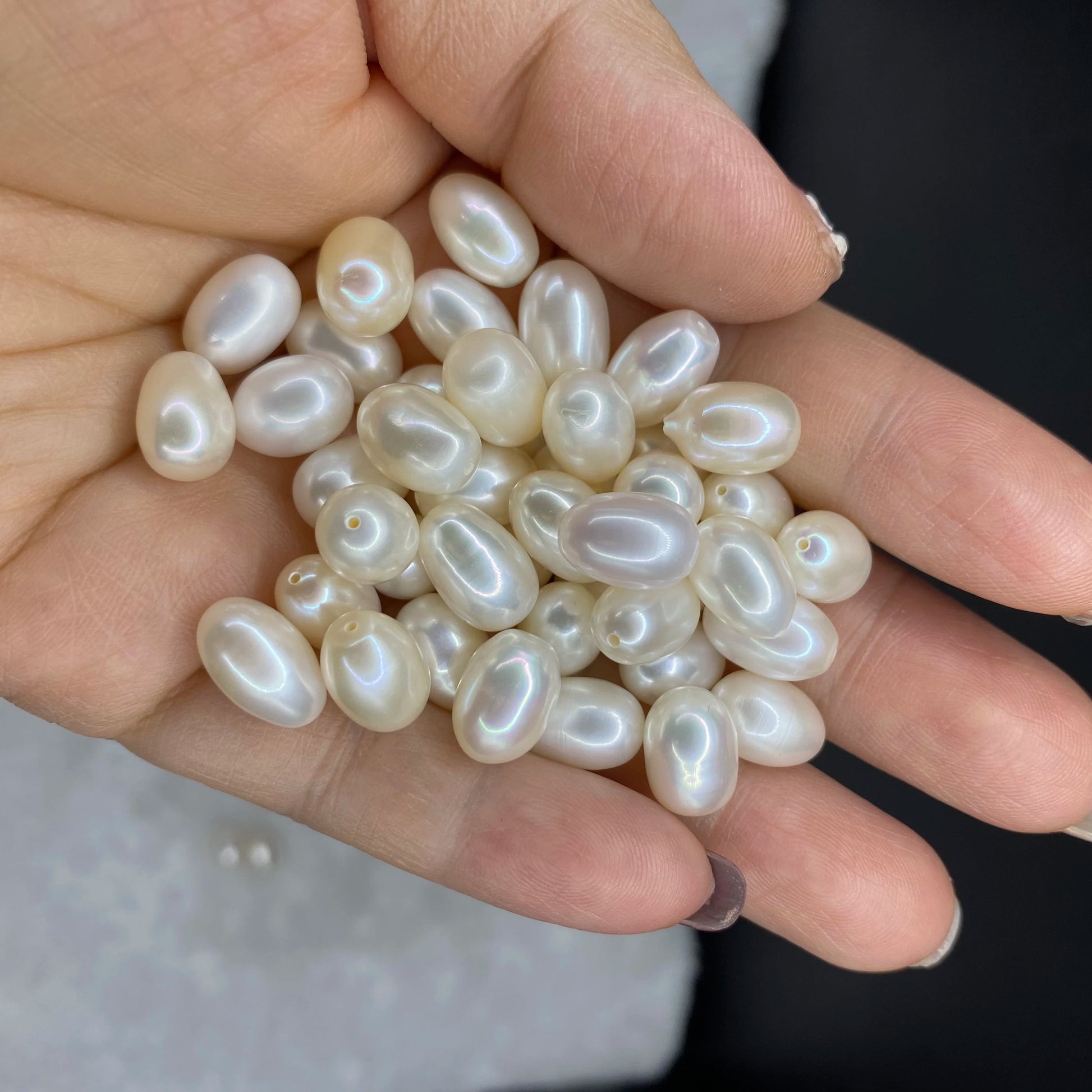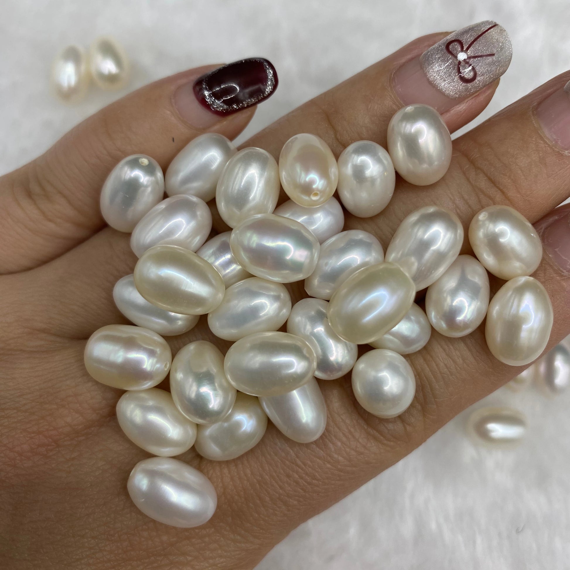 Wholesale 4A Freshwater Large Size 8x12mm White Rice Pearl Necklace Loose Natural Pink Colored Pearls for Women's Jewelry