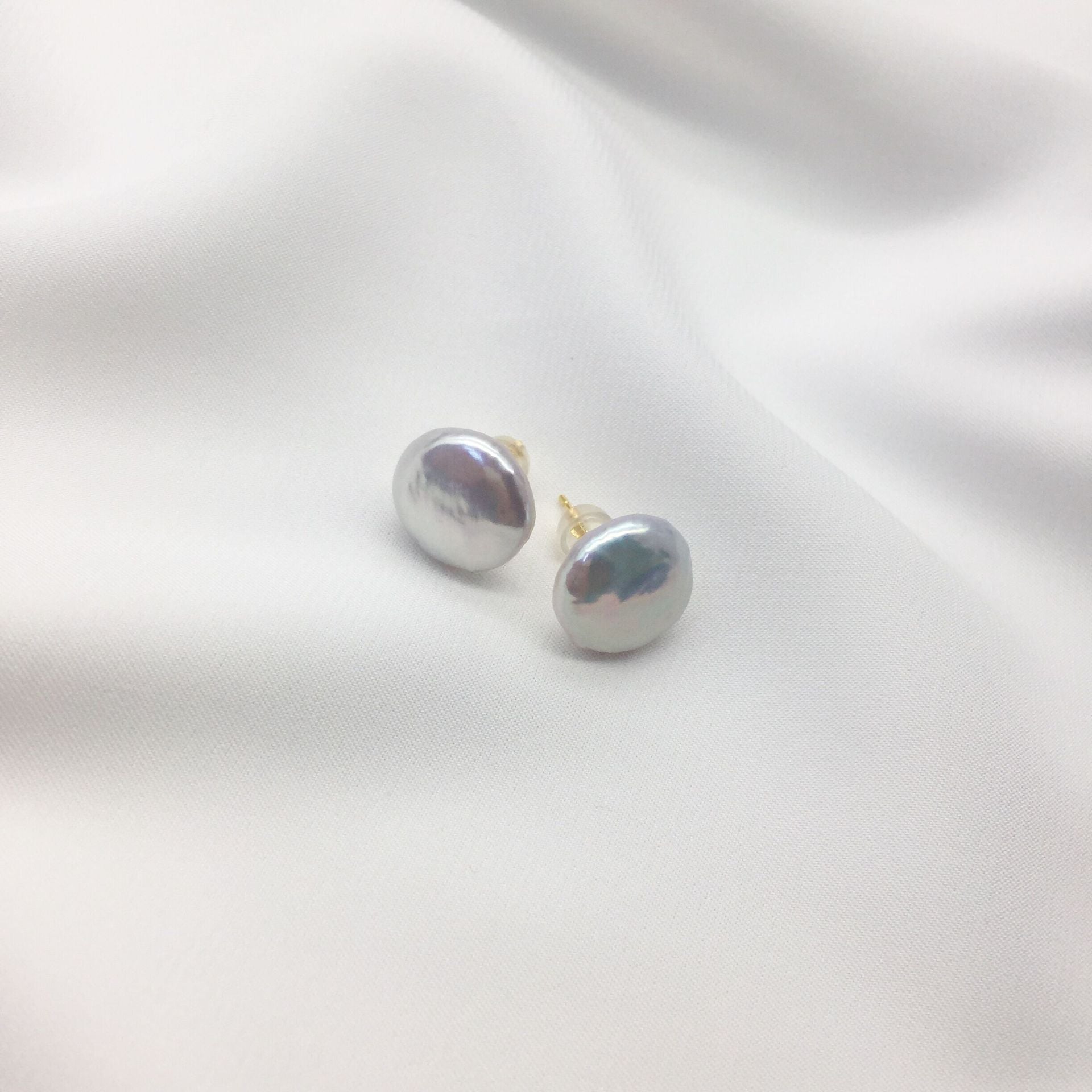 freshwater button flat baroque necklace bracelet stud earrings three-piece set